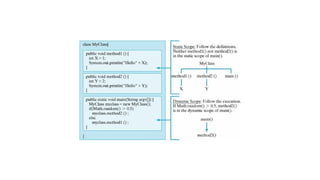 • A static method cannot refer to “this” or “super” keywords in anyway
