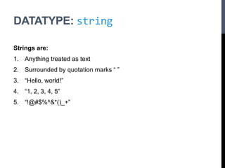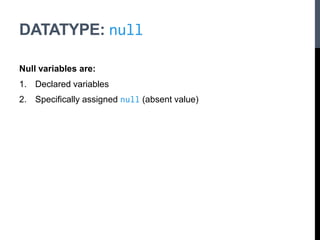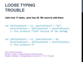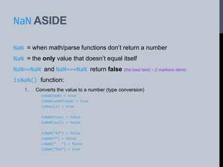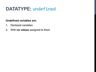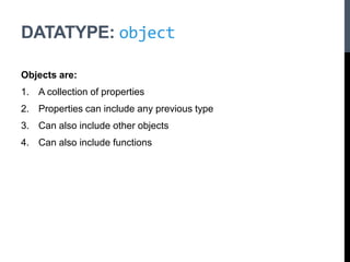 - Data types in JavaScript including numbers, strings, Booleans, objects, and more