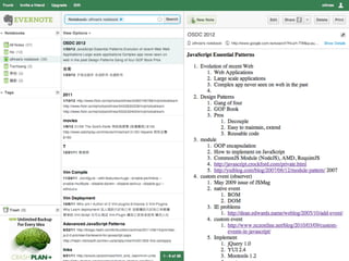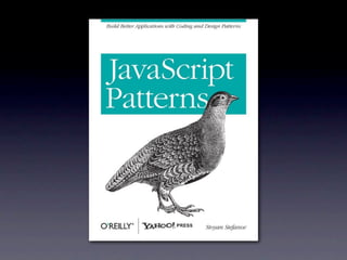 - JavaScript patterns like custom events, deferreds, and pub/sub can help manage asynchronous processes in the browser environment. Custom events allow defining and triggering custom events. Deferreds help manage callbacks and caching of asynchronous results. Pub/sub implements a publisher/subscriber pattern for loose coupling between modules. These patterns help modularize applications and decouple components.