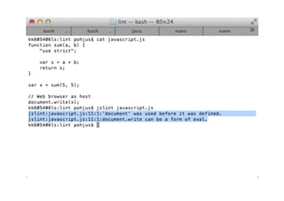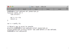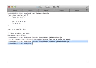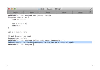 - Global variables should be avoided, and code quality tools like JSLint can help identify issues