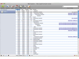 JavaScript performance patterns focuses on optimizing JavaScript loading and execution for better performance. Some key points include reducing the number of script files, leveraging caching, minification and compression. Asynchronous loading helps prevent blocking. DOM operations are expensive so it's important to cache references, batch operations and avoid reflows. Data attributes provide a convenient way to store data on elements. Shims and polyfills should be used judiciously, loading conditionally where native support is limited. Benchmarking is crucial to identify real bottlenecks and measure impact of optimizations.