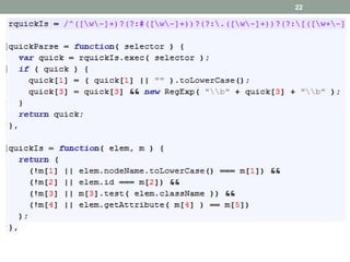 - Event delegation was optimized through "quickIs()" to speed up selector matching, improving delegation performance by 2-4x in most browsers.