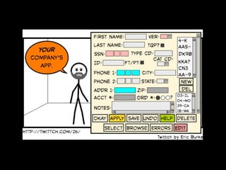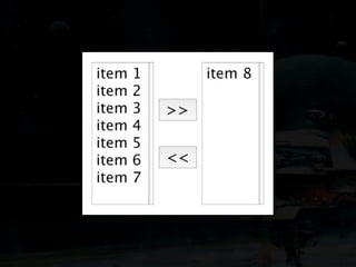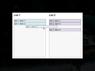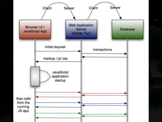 The document discusses the use of jQuery, emphasizing its unobtrusive and functional nature for web developers unfamiliar with programming. It covers various jQuery functionalities such as DOM access, modification of webpage appearance, event handling, AJAX integration, and effects. The document also highlights the availability of numerous open source UI components and plugins built on jQuery.