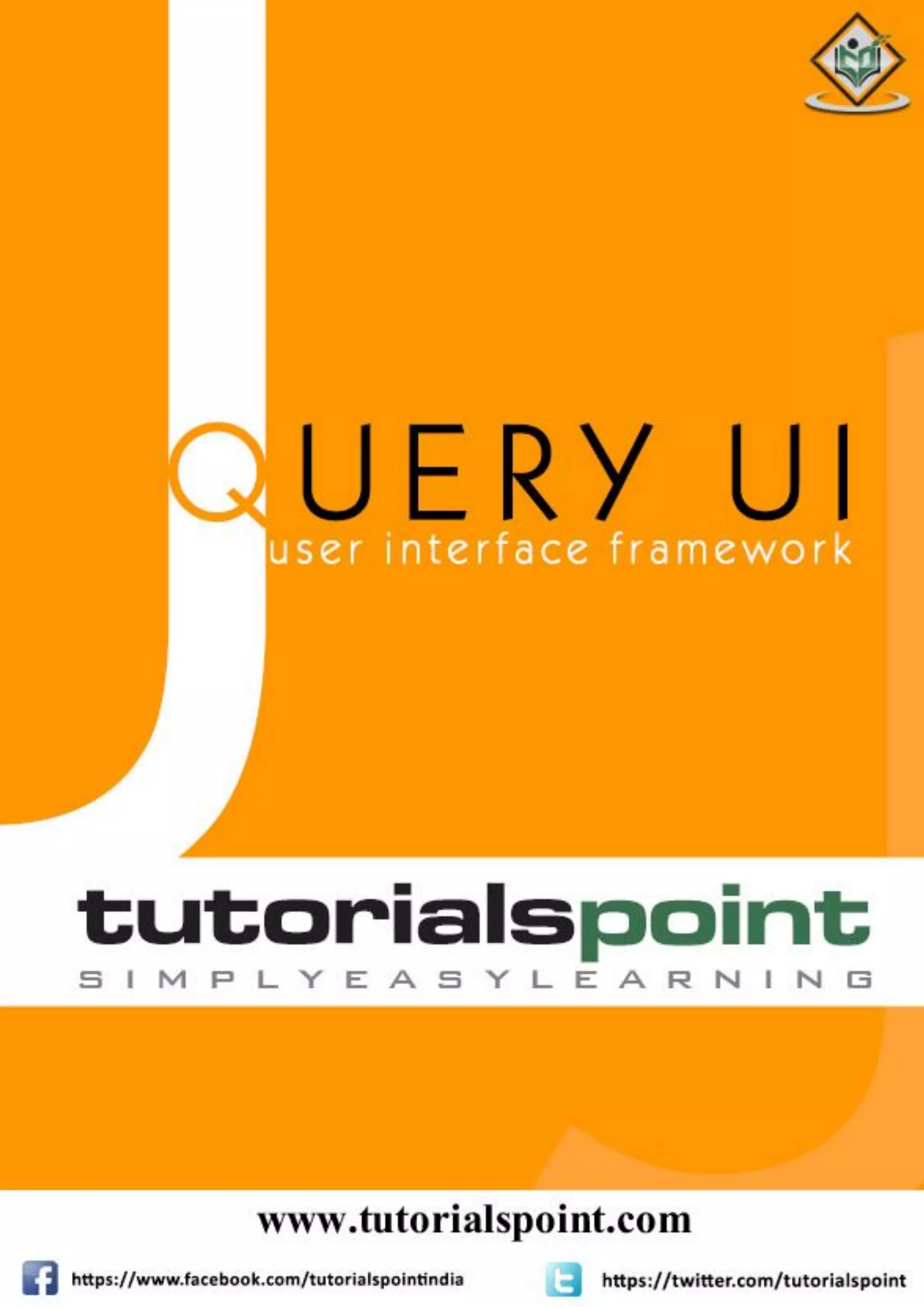 The document is a tutorial on jQuery UI, a widely used front-end framework that simplifies web development by providing a collection of plugins for creating user interfaces. It includes sections on features, environment setup, and numerous components such as draggable, droppable, and resizable elements, along with various widgets, effects, and utilities. The tutorial is beneficial for individuals with a basic understanding of HTML and CSS who wish to enhance their web development skills using jQuery UI.