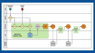 Kubernetes is an open-source system for automating deployment, scaling, and management of containerized applications. It groups containers that make up an application into logical units for easy management and discovery called pods. Its core components include a master node that manages the cluster and worker nodes that run the applications. It uses labels to organize resources and selectors to group related objects. Common concepts include deployments for updating apps, services for network access, persistent volumes for storage, and roles/bindings for access control. The deployment process involves controllers reconciling desired and current states by creating pods, replica sets, and other resources that interact with the Kubernetes API and are scheduled on nodes.
