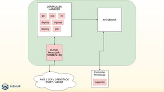 The document discusses the use of Kubernetes Custom Resource Definitions (CRDs) and operators to automate application lifecycle management in a cloud-native environment. It highlights Kubernetes extensibility features, operator patterns, and the properties and capabilities of controllers for managing resources efficiently. The presentation aims to address the challenges of repetitive manual operations and proposes the use of operators as a solution for scaling, management, and stateful applications.