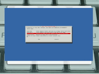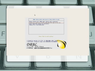 The document discusses the deployment of Linux using Diskless Remote Boot in Linux (DRBL) for efficiently installing multiple systems via PXE booting. It introduces how DRBL allows for cloning with Clonezilla and provides instructions for setting up a DRBL server, configuring client computers, and creating/restoring system images. The system is open-source, fast, and supports customization under the GPL license.