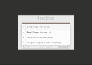 This document discusses best practices for building large-scale JavaScript applications, emphasizing the importance of modularity by breaking down applications into smaller, testable components. It covers concepts like modules, dependency management, and event handling, offering code examples and guidelines for effective organization. Additionally, it touches on using libraries and frameworks, as well as the benefits of adhering to design patterns like MVC and MVVM.