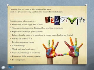 The document discusses strategies for enhancing student engagement and empowerment in schools, emphasizing the need for educators to focus on innovative teaching practices rather than traditional approaches. It highlights the importance of technology and collaboration in improving educational experiences, presenting various tools and apps that support these goals. The discussion also covers the challenges teachers face in integrating technology into their classrooms and the necessary infrastructure for modern digital learning environments.
