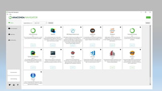 This document provides an introduction to Python programming language. It discusses what Python is, its features, applications, and how it compares to compiled languages in terms of compiling versus interpreting. It also covers installing Python, different Python environments like the Python shell, IDLE, Jupyter Notebook, and Anaconda. Basic Python concepts like variables, data types, operators, functions, modules, and math module commands are explained. The reader is instructed to install NumPy and SciPy using conda for the next lab and test the installations.