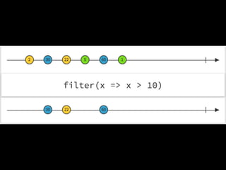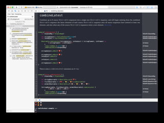 RxSwift is a library for reactive programming with Observables that provide asynchronous, event-based data streams. The document discusses key concepts of reactive programming like data flows, propagation of change, and functional reactive programming. It provides examples of using RxSwift to create Observables from various sources and applying operators like map, filter, and combineLatest. Validation of form fields is demonstrated by combining Observables of text changes and checking field values and formats.
