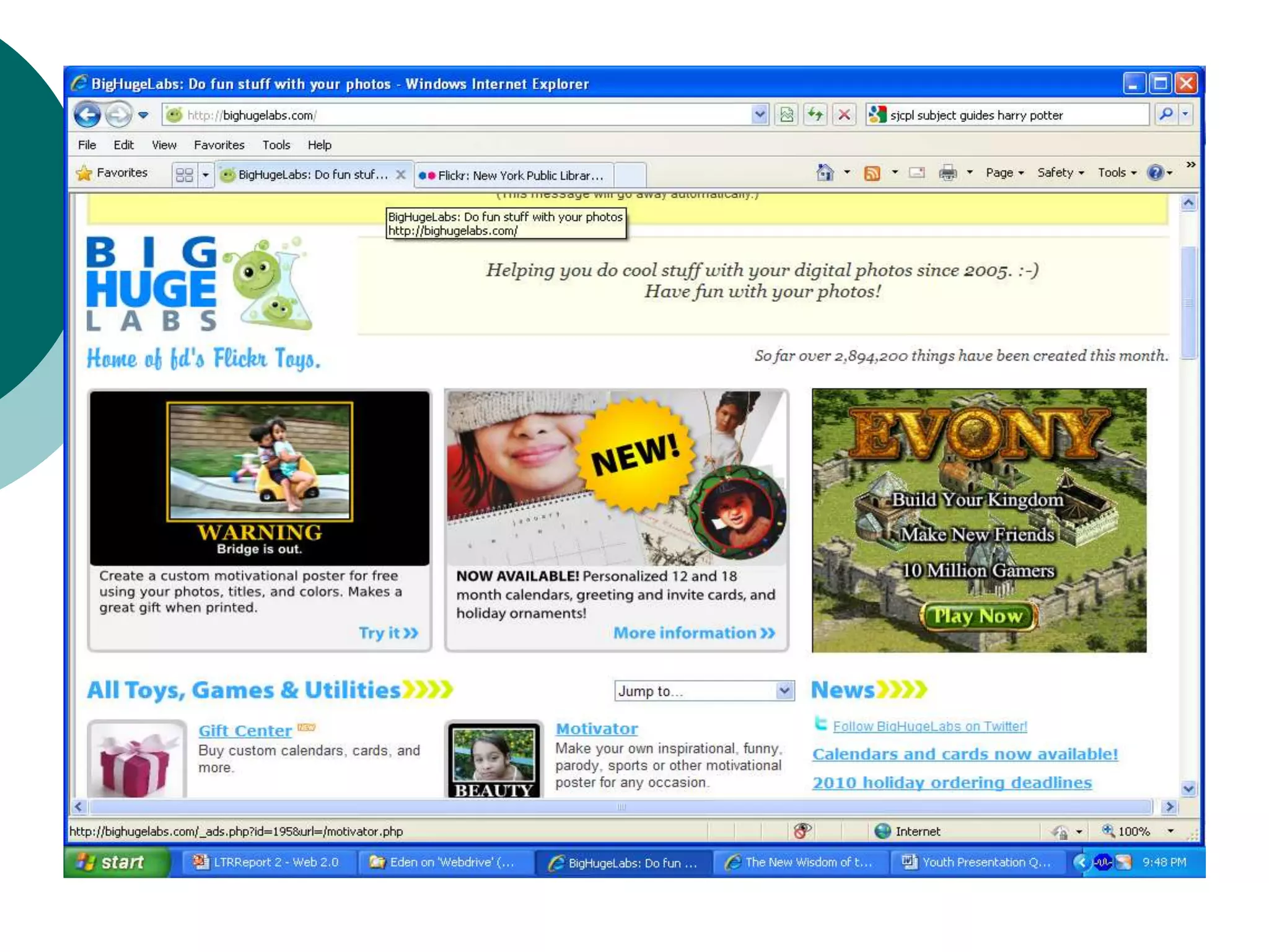 This document discusses how libraries can use various Web 2.0 technologies like blogs, wikis, Flickr, RSS feeds, and instant messaging to better engage with users and provide services. It provides examples of how libraries are using these tools, best practices, and tips for implementation. The key benefits highlighted are improved communication, collaboration, and participation between the library and its users.