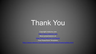 This document provides information about copyright and websites for Indezine.com, a company that offers PowerPoint templates and presentations. It lists the copyright holder and includes URLs for the main Indezine website along with pages for banking presentations and free PowerPoint templates.