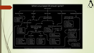 Linux is an open source operating system based on Unix that can be installed on various devices. Open source software has source code that anyone can inspect and modify. Popular Linux distributions include Ubuntu, Linux Mint, Debian, and Fedora. To build an open source application, you need a Linux distribution and programming knowledge. The Quickly tool can be used to create, edit, package, and publish applications in Ubuntu. While open source offers advantages like security, customization, and free software, disadvantages include a lack of standardization and unsupported hardware. Common myths about open source include it being insecure, having few applications, being too difficult for non-programmers, and having no copyright restrictions.