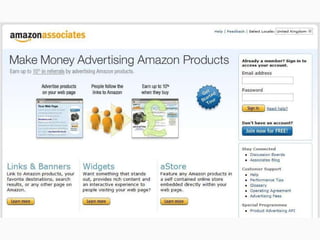 This document discusses how to earn supplemental income, or "beer money", through affiliate programs and ads on a travel blog. It explains basic terminology like revenue per click/impression and affiliate commissions. Typical earnings are estimated to be a few pence per click or around 5% commission. Maximizing visitors through links from other sites can increase earnings from tens to hundreds of pounds per month, depending on effort. Resources for programs like Google AdSense and Amazon Associates are provided.