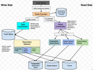 Socrata is a software company that provides an open data platform to enable governments to publish and share data with the public and developers in order to spur innovation; their platform allows users to find, explore, and analyze datasets through tools for visualization, analysis, and application building. The document discusses Socrata's architecture and technologies that power their open data platform and allow it to handle large volumes of data and queries in a scalable way.