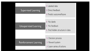 Machine Learning with Python discusses machine learning concepts and the Python tools used for machine learning. It introduces machine learning terminology and different types of learning. It describes the Pandas, Matplotlib and scikit-learn frameworks for data analysis and machine learning in Python. Examples show simple programs for supervised learning using linear regression and unsupervised learning using K-means clustering.