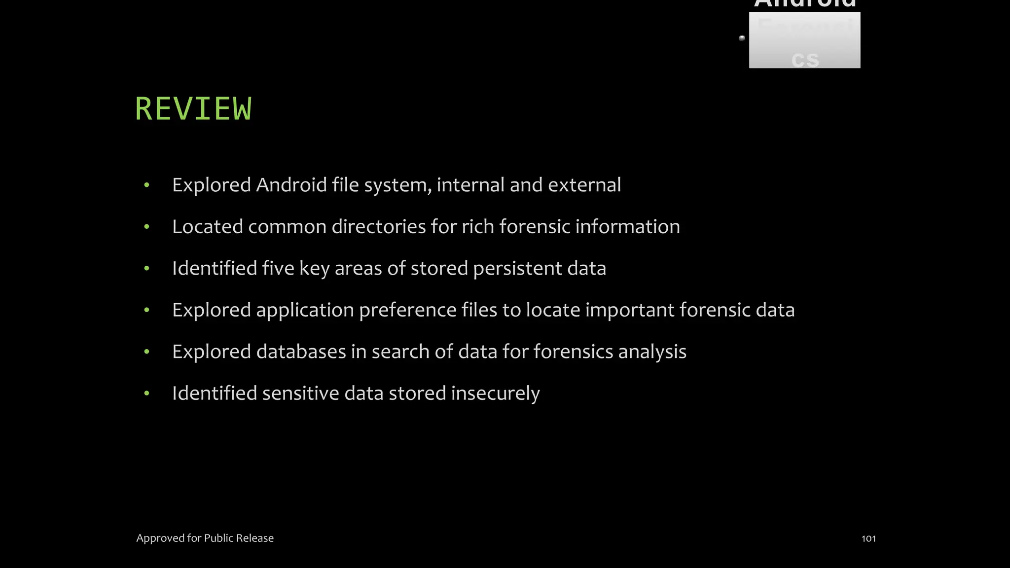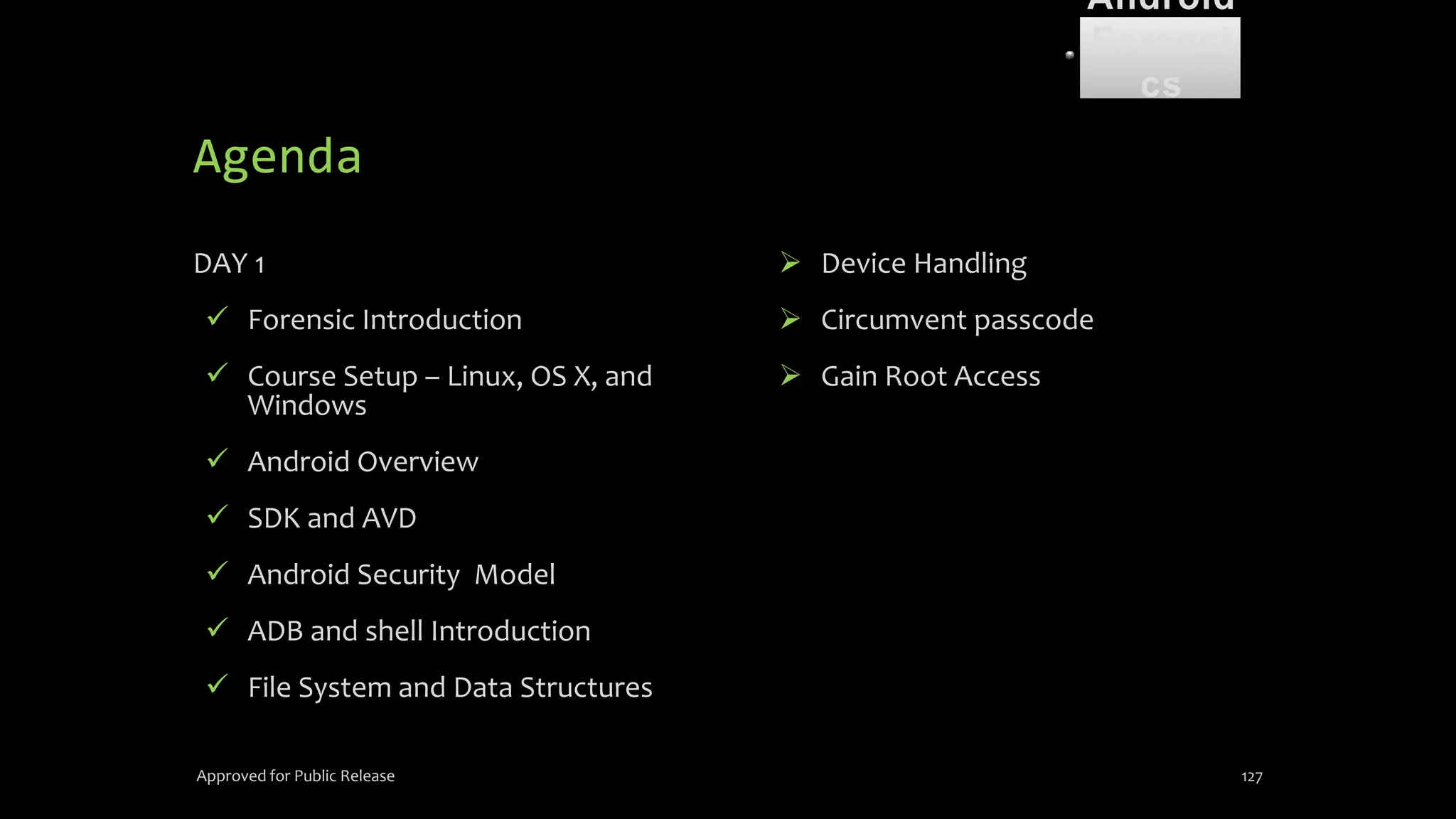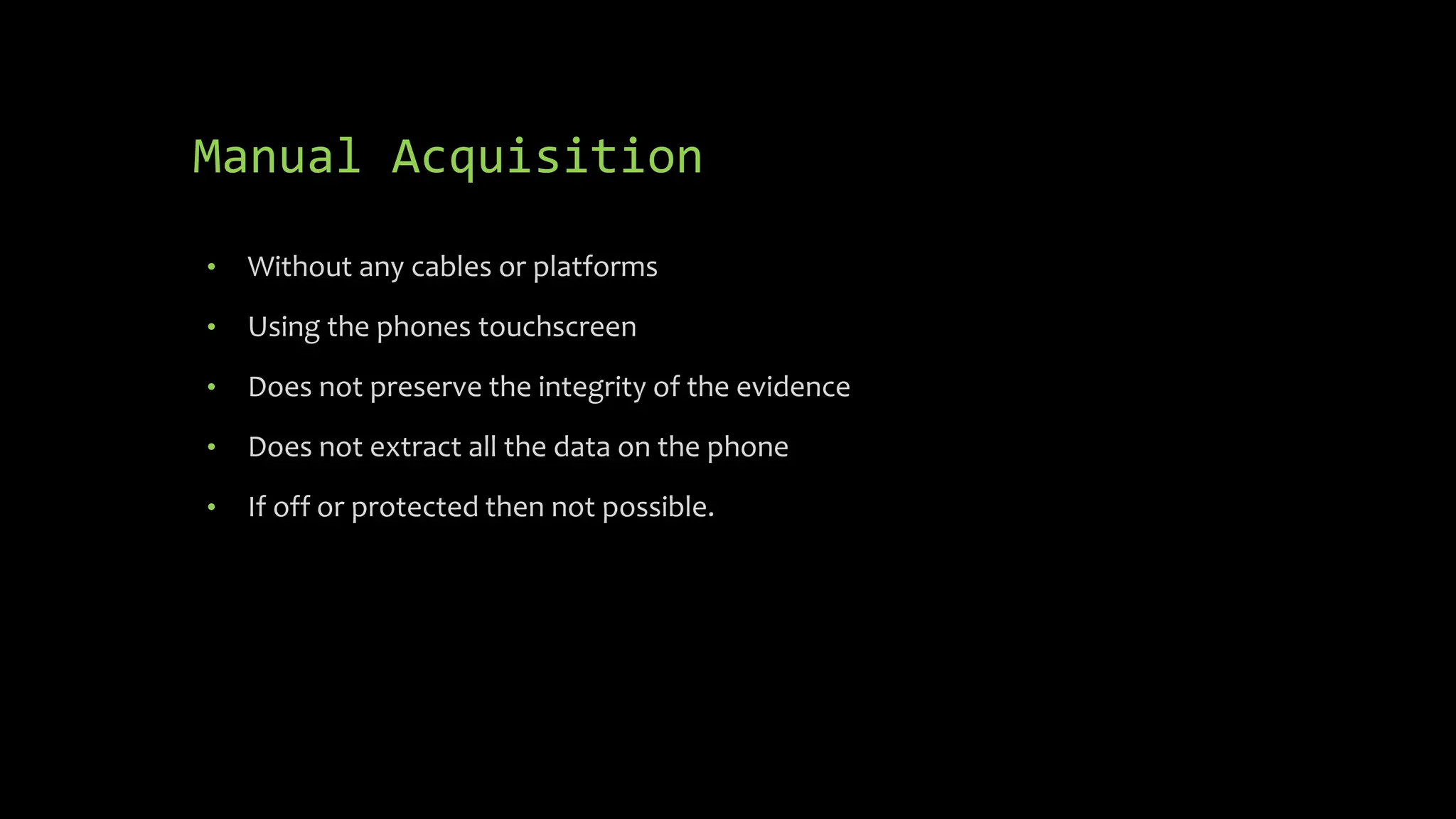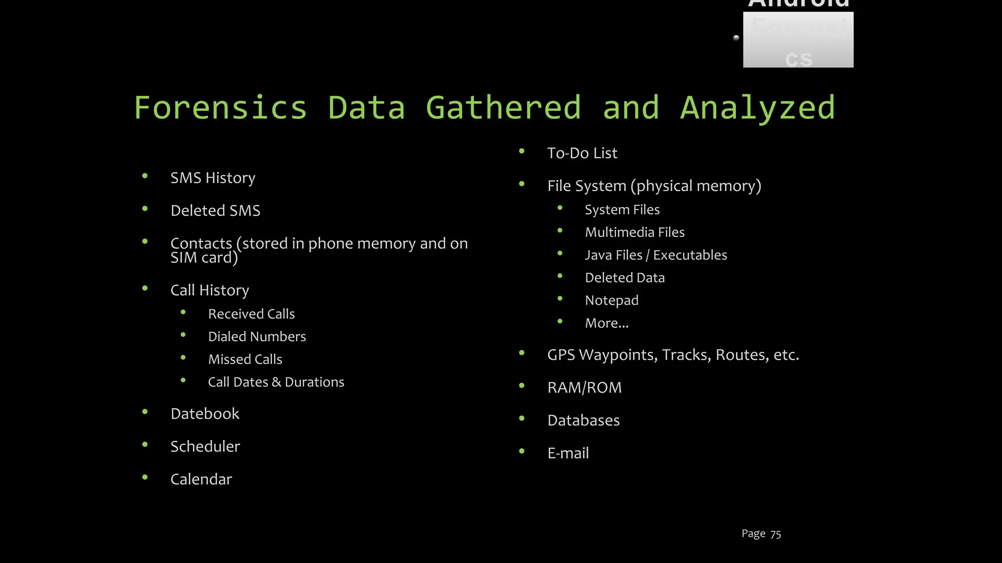 The document discusses mobile and wireless device forensics, highlighting the various types of data stored on mobile devices, the challenges of investigating these devices, and acquisition procedures for data retrieval. It covers the significance of SIM cards, personal digital assistants (PDAs), and the importance of preserving the integrity of evidence during the acquisition process. Additionally, it outlines mobile forensics equipment, techniques for data extraction, and specific considerations for Android forensics, including the role of Android Debug Bridge (ADB) in forensic analysis.