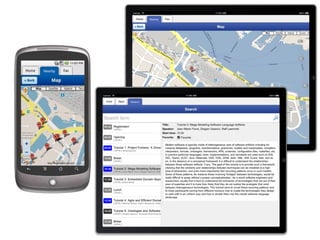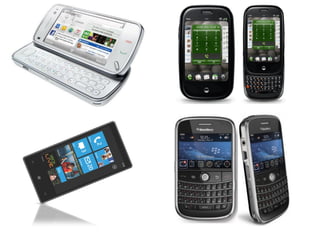 Mobl is a programming language for building mobile web applications. It aims to provide portability across different mobile platforms and browsers by compiling to JavaScript and HTML5. Mobl supports common mobile features like location services, camera, contacts and more through a simple object-oriented syntax. It also includes tools for building user interfaces, accessing data through entities and queries, and making web service requests. The goal is to enable complete coverage of mobile development needs while avoiding platform-specific code.