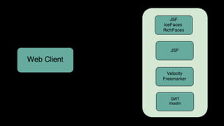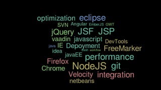 Modern JavaScript workflows use various tools to manage dependencies, build scripts, and frontend libraries. Popular tools include Grunt for running tasks, Bower for frontend package management, and Yeoman for scaffolding projects. These tools use mechanisms like npm, semantic versioning, and package.json files to integrate with build systems like Maven. Tests can be run with Karma and frameworks like PhantomJS.