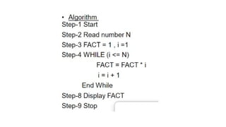 • An algorithm is a step-wise representation of a solution to a given problem.