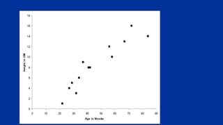 These 2 variablesare of the quantitative type, one variable (Age) is called the independent and denoted as (X) variable and the other (weight) is called the dependent and denoted as (Y) variables to find the relation between age and weight compute the simple correlation coefficient using the following formula: