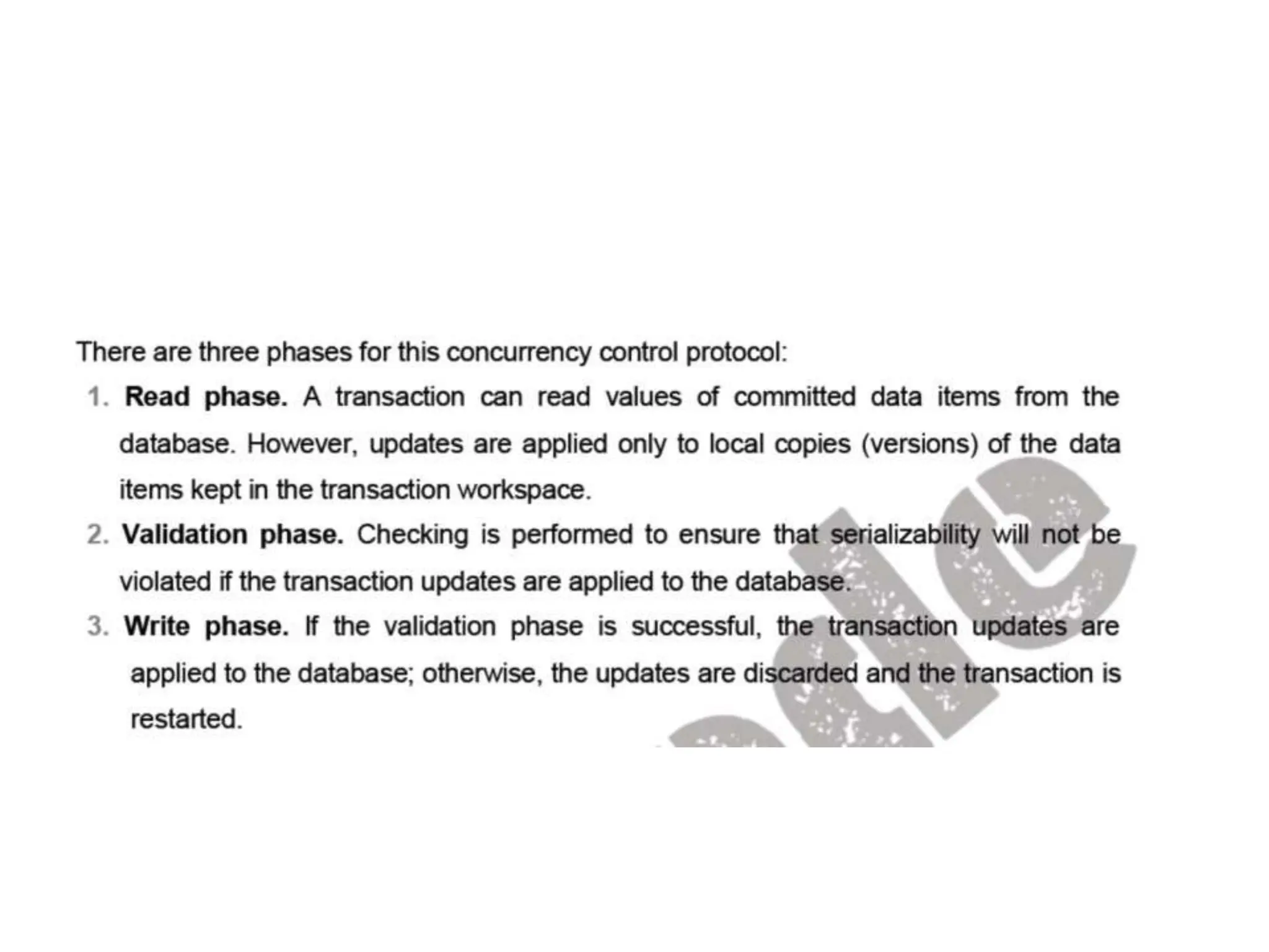 4)In optimistic concurrencycontrol techniques, also