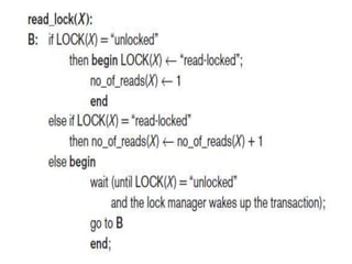 • Locking protocols are used in some commercial