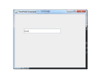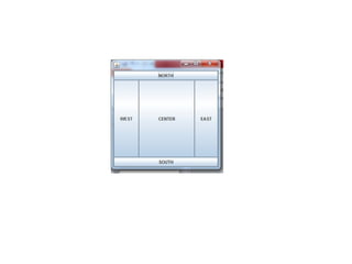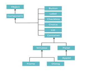 The document provides an overview of Java's Abstract Window Toolkit (AWT) and Swing for GUI programming, highlighting their components, containers, and layout management. AWT is platform-dependent and heavyweight, while Swing is platform-independent and lightweight, presenting a broader range of components and supporting the Model-View-Controller (MVC) pattern. It also includes examples for creating GUIs using both AWT and Swing components, as well as discussions on layout managers like BorderLayout and GridLayout.