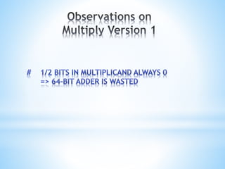 *32-bit Multiplicand reg, 32 -bit ALU, 64-bit Product reg,