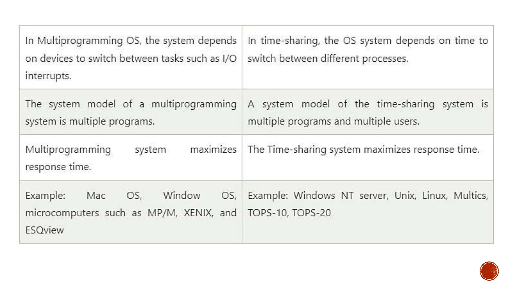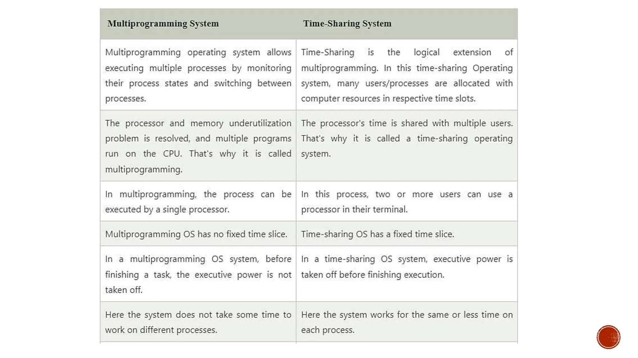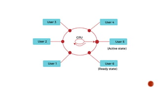 • #11 The CPU executes multiple jobs by switching between them, but the switches occur so frequently. Thus, the user can receive an immediate response. The operating system uses CPU scheduling and multiprogramming to provide each user with a small amount of time. Computer systems that were designed primarily as batch systems have been modified to time-sharing systems.