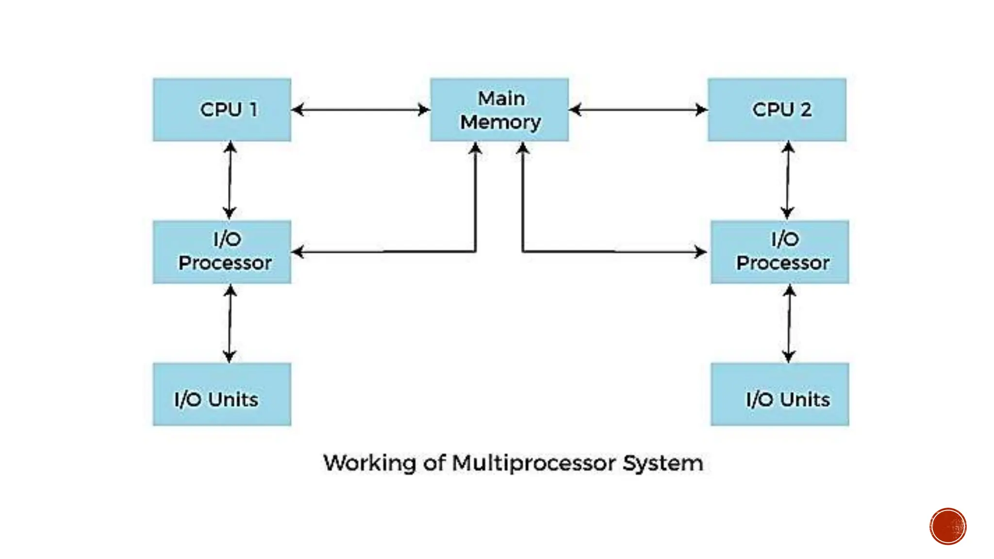  In operatingsystems, to improve the performance of more than one CPU can be used within one computer system called Multiprocessor operating system.  Multiple CPUs are interconnected so that a job can be divided among them for faster execution. When a job finishes, results from all CPUs are collected and compiled to give the final output. Jobs needed to share main memory and they may also share other system resources among themselves. Multiple CPUs can also be used to run multiple jobs simultaneously.
