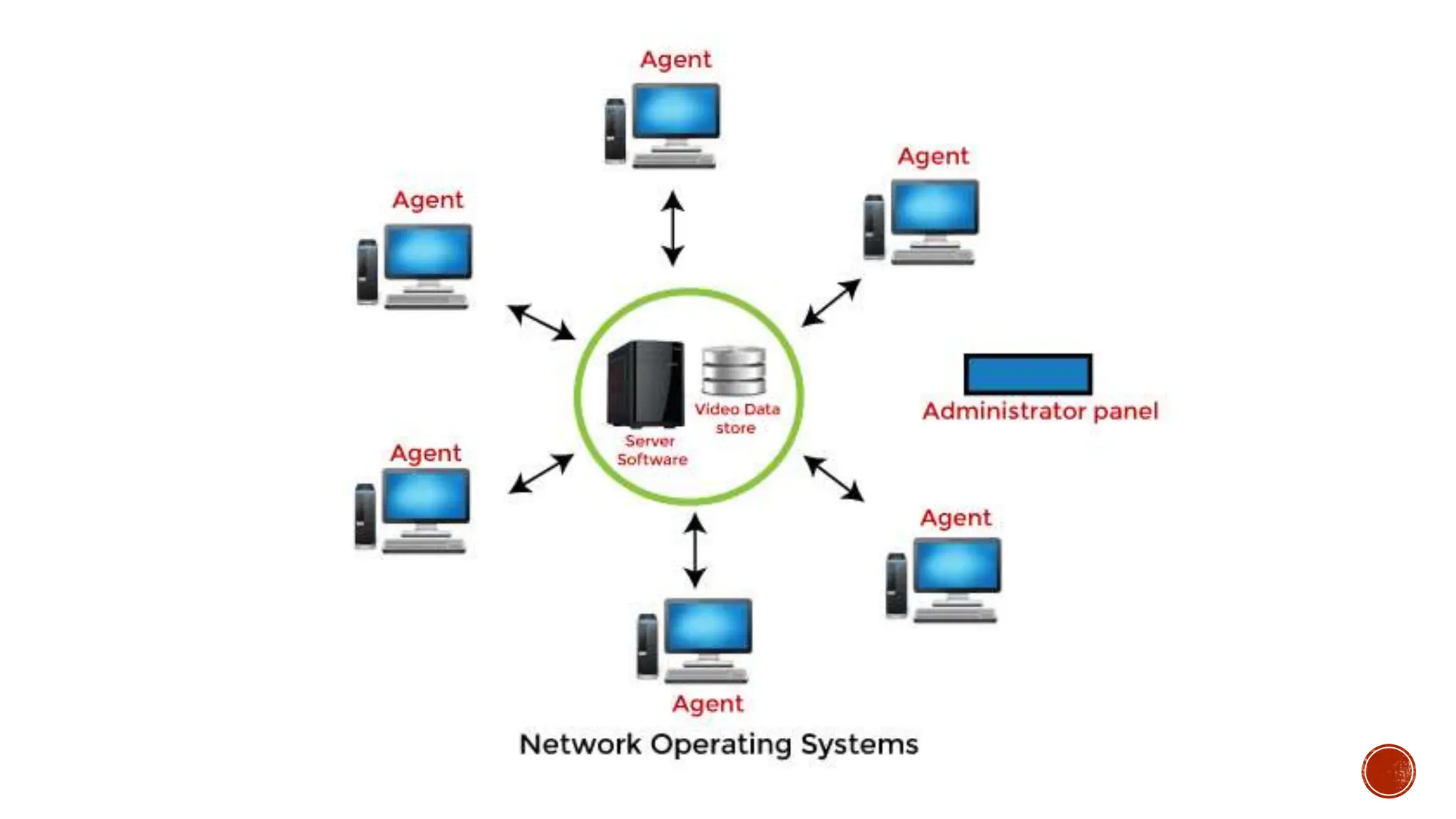 • #25 Types of Network Operating System: Peer To Peer System-Peer To Peer networks are the network resources in which each system has the same capabilities and responsibilities, i.e., none of the systems in this architecture is superior to the others in terms of functionality. A Peer to Peer Network Operating System allows two or more computers to share their resources, along with printers, scanners, CD-ROM, etc., to be accessible from each computer. These networks are best suitable for smaller environments with 25 or fewer workstations. To establish a Peer Peer Network, you need network adapter cards, properly installed network cabling to connect them, and a network hub or switch to interconnect the computers. Client-Server System-n Client-Server systems, there are two broad categories of systems: -The server is called the backend. -A client called as frontend. Client-Server Network Operating System is a server-based Network in which storage and processing workload is shared among clients and servers. The client requests offerings which include printing and document storage, and servers satisfy their requests. Normally all community offerings like digital mail, printing are routed through the server. Server computers systems are commonly greater effective than client computer systems. This association calls for software programs for the customers and servers. The software program walking at the server is known as the Network Operating System, which offers a community of surroundings for server and client. Client-Server Network was developed to deal with the environment when many PC printers and servers are connected via a network. The fundamental concept changed to outline a specialized server with unique functionality. For Example: Number of customers are related or connected to a file server that stores the files of client machines. Another system might be special as a Print Server to satisfy the printing request with the aid of using the diverse customers. Web servers or email servers are different specialized servers that may be utilized in a Client-Server system.