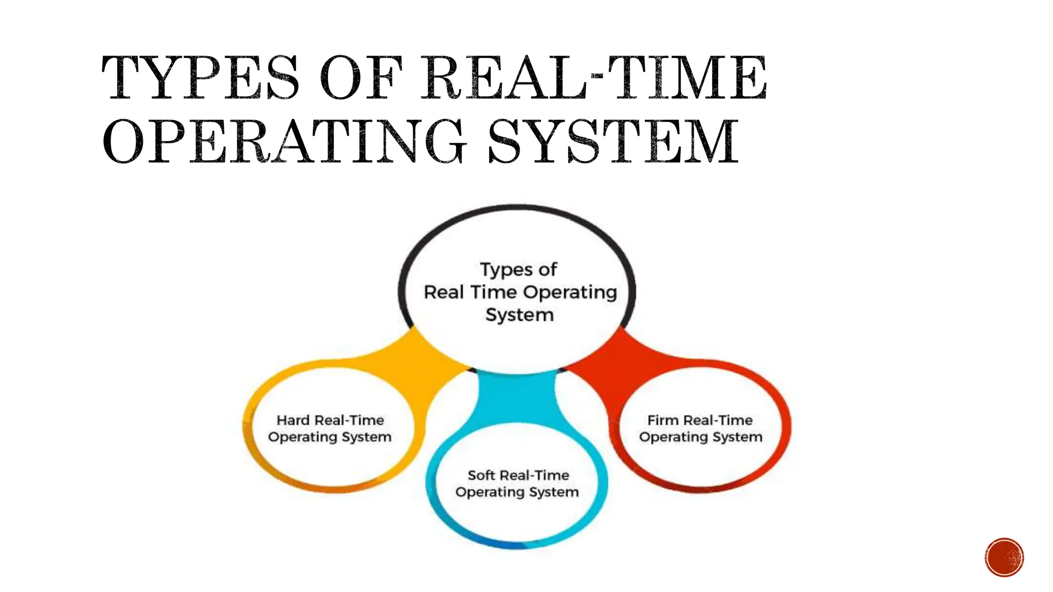 • #30 Hard Real-Time operating system: In Hard RTOS, all critical tasks must be completed within the specified time duration, i.e., within the given deadline. Not meeting the deadline would result in critical failures such as damage to equipment or even loss of human life. For Example, Let's take an example of airbags provided by carmakers along with a handle in the driver's seat. When the driver applies brakes at a particular instance, the airbags grow and prevent the driver's head from hitting the handle. Had there been some delay even of milliseconds, then it would have resulted in an accident. Similarly, consider an on-stock trading software. If someone wants to sell a particular share, the system must ensure that command is performed within a given critical time. Otherwise, if the market falls abruptly, it may cause a huge loss to the trader. Soft Real-Time operating system: Soft RTOS accepts a few delays via the means of the Operating system. In this kind of RTOS, there may be a closing date assigned for a particular job, but a delay for a small amount of time is acceptable. So, cut off dates are treated softly via means of this kind of RTOS. For Example, This type of system is used in Online Transaction systems and Livestock price quotation Systems. Firm Real-Time operating system: In Firm RTOS additionally want to observe the deadlines. However, lacking a closing date might not have a massive effect, however may want to purposely undesired effects, like a massive discount within the fine of a product. For Example, this system is used in various forms of Multimedia applications like Creative Industries Commerce Entertainment  Education Educational Technology Social Work Purposes Communication Journalism Engineering Medicine Research Interior Designing