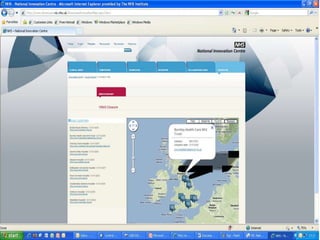 The document discusses the initiatives and programs of the National Innovation Centre (NIC) aimed at enhancing the life sciences industry in the UK, particularly through collaboration with the NHS to address clinical needs and promote innovative solutions. NIC employs both reactive and proactive approaches to gather insights from clinicians and innovators, utilizing tools like online scorecards and competitions for solution development. The document highlights the economic benefits of these innovations, including potential cost savings for the NHS and increased funding for SMEs involved in healthcare innovations.