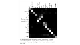 This document discusses neural network models for natural language processing tasks like machine translation. It describes how recurrent neural networks (RNNs) were used initially but had limitations in capturing long-term dependencies and parallelization. The encoder-decoder framework addressed some issues but still lost context. Attention mechanisms allowed focusing on relevant parts of the input and using all encoded states. Transformers replaced RNNs entirely with self-attention and encoder-decoder attention, allowing parallelization while generating a richer representation capturing word relationships. This revolutionized NLP tasks like machine translation.