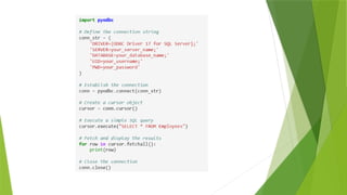 Includes Driver Name, Server Information, Database Name, Authentication Details, Port