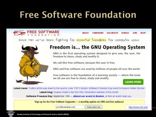 The document explains the concept of software, focusing on open source software, which allows users access to the source code for modification and distribution. It outlines the benefits of open source, such as better quality and flexibility, and differentiates between open source and free software, emphasizing that 'free' refers to freedom, not cost. Additionally, it lists prominent open source software examples and discusses the licensing aspects that define open source software.