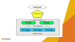 The document discusses OpenStack Swift, an open source, scalable object storage system. It provides an agenda that covers unstructured data, the history and contributors to OpenStack Swift, its architecture and features, examples of production deployments, and how to contribute. The document aims to provide an overview and panoramic view of OpenStack Swift.