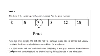 • The sorted input list is 3, 5, 7, 8, 12, 15. We need to apply the quick