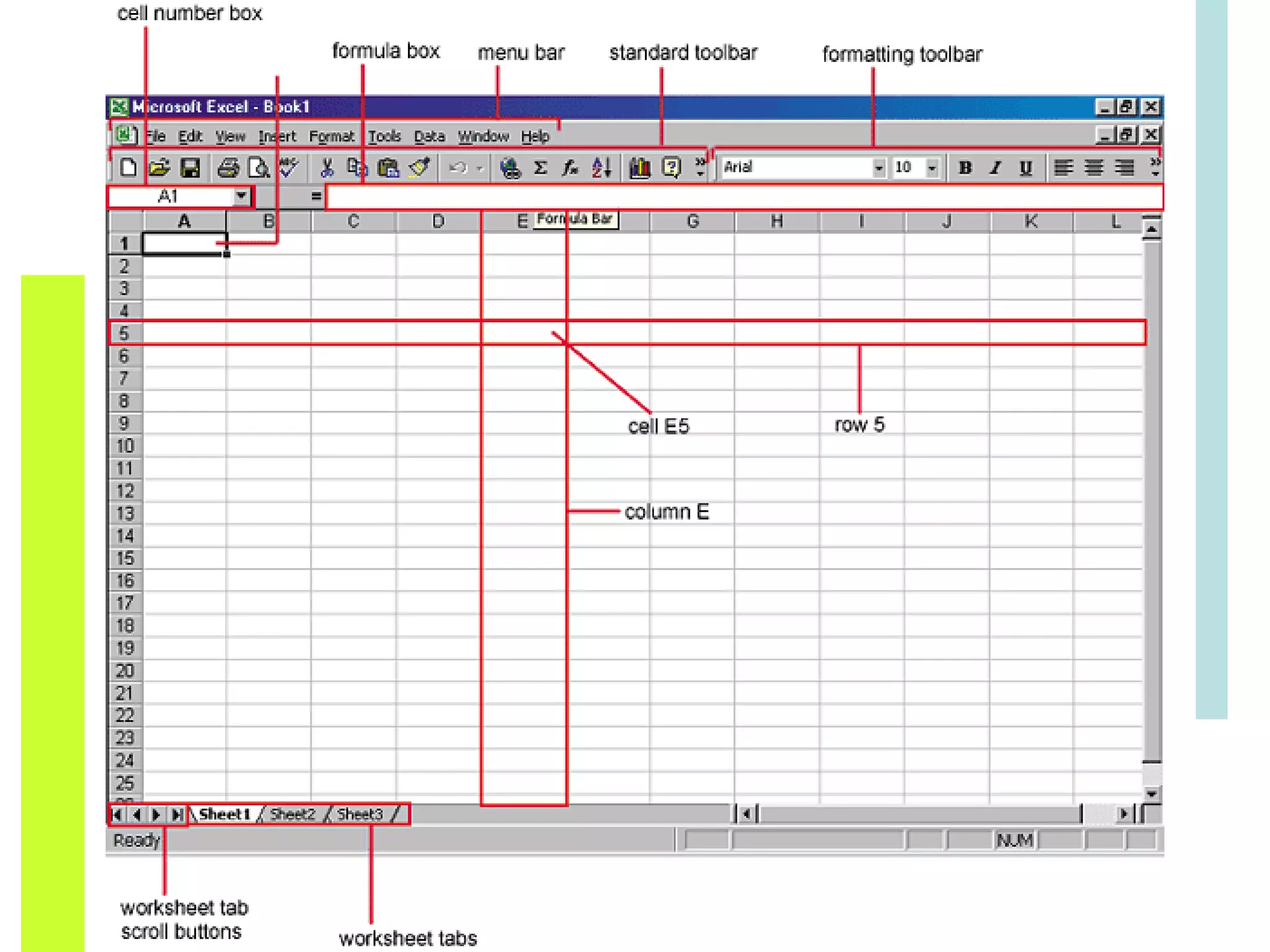 Introduction to Excel worksheets, cells, columns, and rows; descriptions of labels and cell addresses.