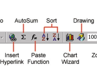 Excel allows users to create electronic spreadsheets organized into workbooks and worksheets. Each worksheet is a grid of columns and rows that can contain numbers, text, or formulas. Cells are the intersections of columns and rows and have addresses to identify their location. Formatting options are available for cells to control number formats, text alignment, fonts, borders, and shading. Formulas in cells automatically calculate and update based on referenced cell values.