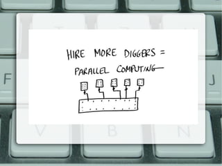 This document discusses parallel computing with GPUs. It introduces parallel computing, GPUs, and CUDA. It describes how GPUs are well-suited for data-parallel applications due to their large number of cores and throughput-oriented design. The CUDA programming model is also summarized, including how kernels are launched on the GPU from the CPU. Examples are provided of simple CUDA programs to perform operations like squaring elements in parallel on the GPU.