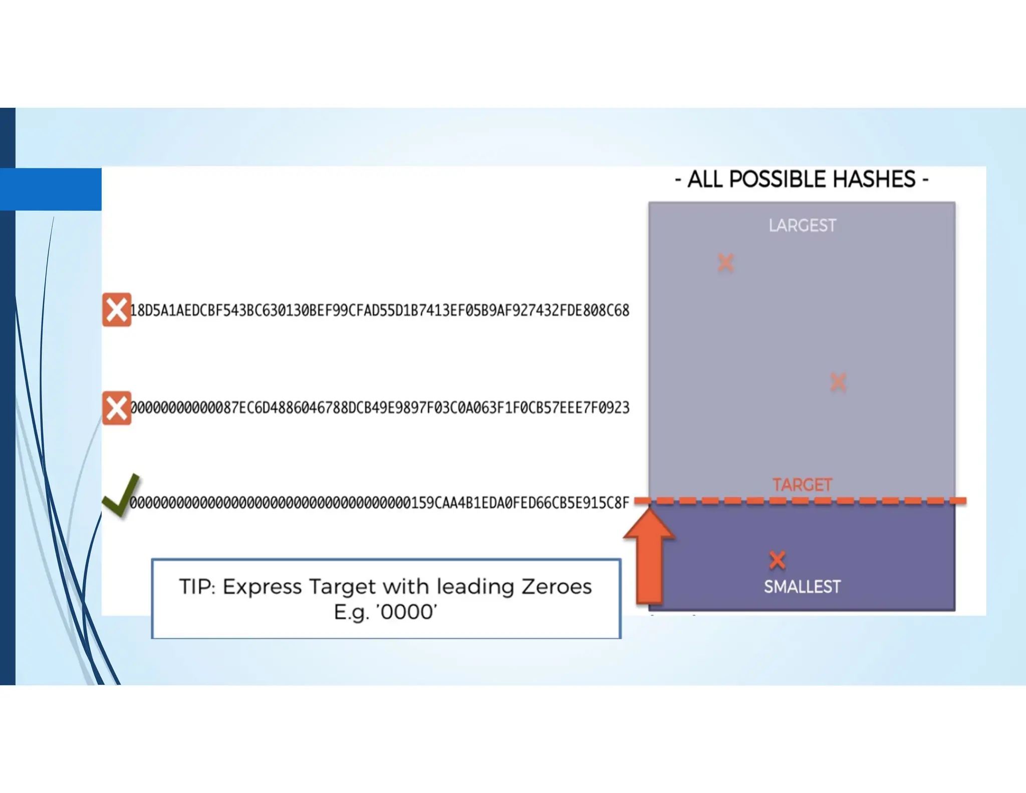 The blockchainalgorithm will set a target for the miners to accomplish a certain hash. Any hash