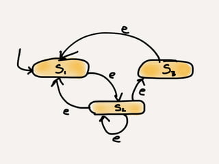 • #46 It’s a state machine! The state machine definition is broad enough that it in- cludes the rules-based approach as a special case. However, in most state machines the actions are determined directly from the events. Rules use a two-step approach where event handlers only modify state and never take actions. Rules then trigger based on the resulting state, which reflects the sum of the outside events. The difference between these two approaches is subtle, but the rules-based approach results in a cleaner code factoring.