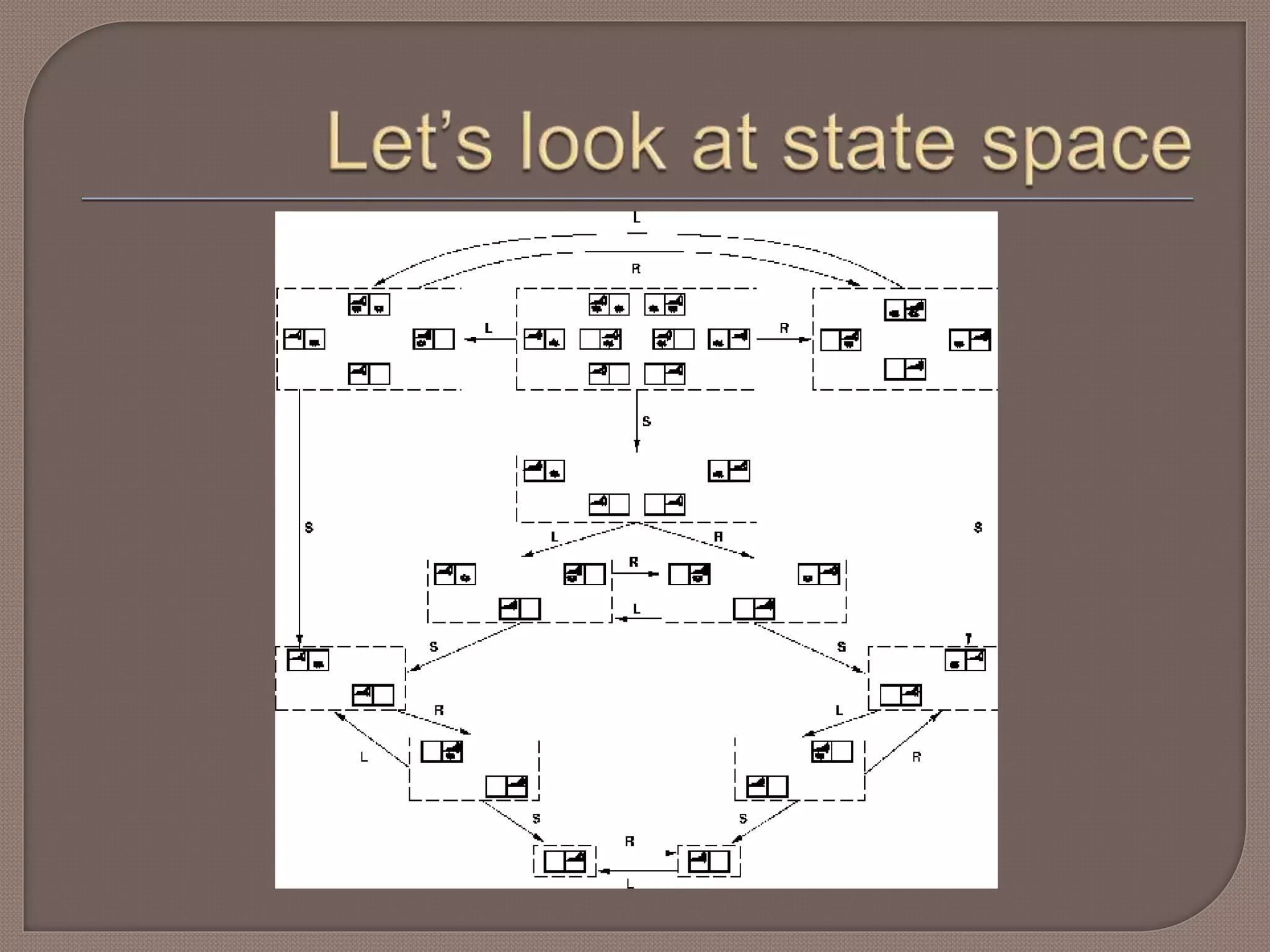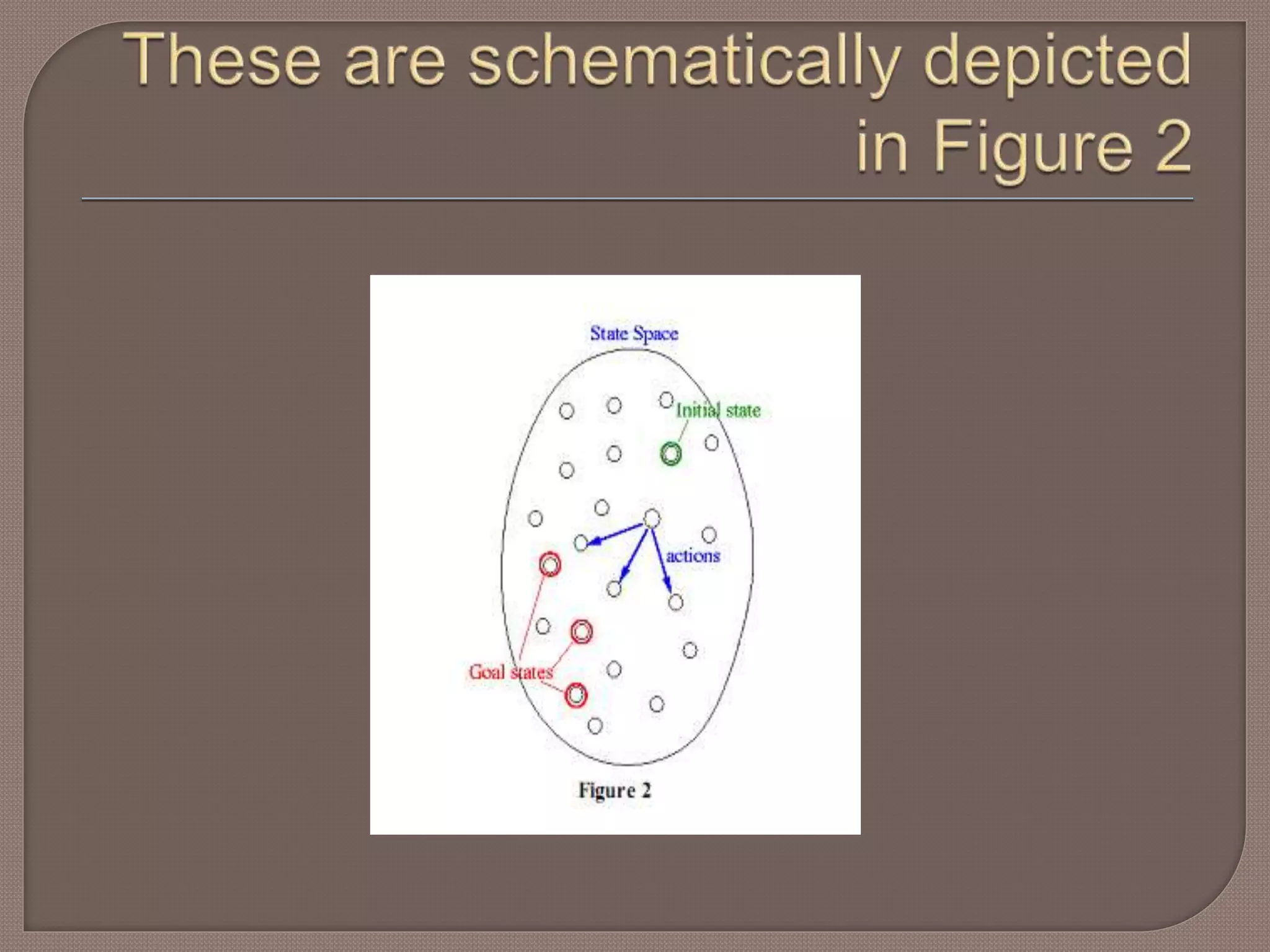 S: the fullset of states •  s : the initial state • A:S→S is a set of operators • G is the set of final states. Note that G ⊆S