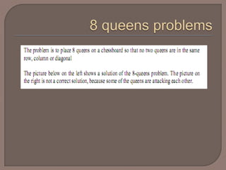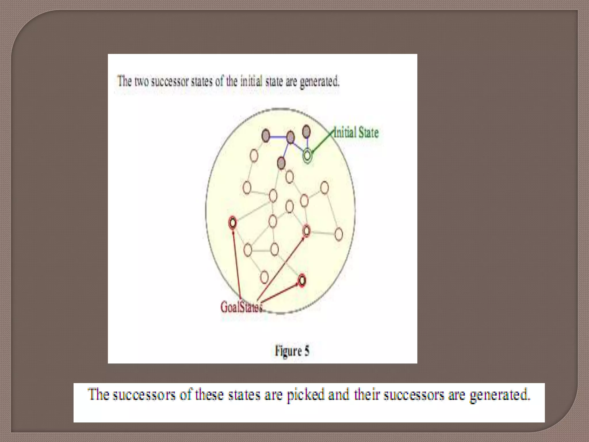 Do until asolution is found or the state space is exhausted. 1. Check the current state 2. Execute allowable actions to find the successor states. 3. Pick one of the new states. 4. Check if the new state is a solution state • If it is not, the new state becomes the current state and the process is repeated