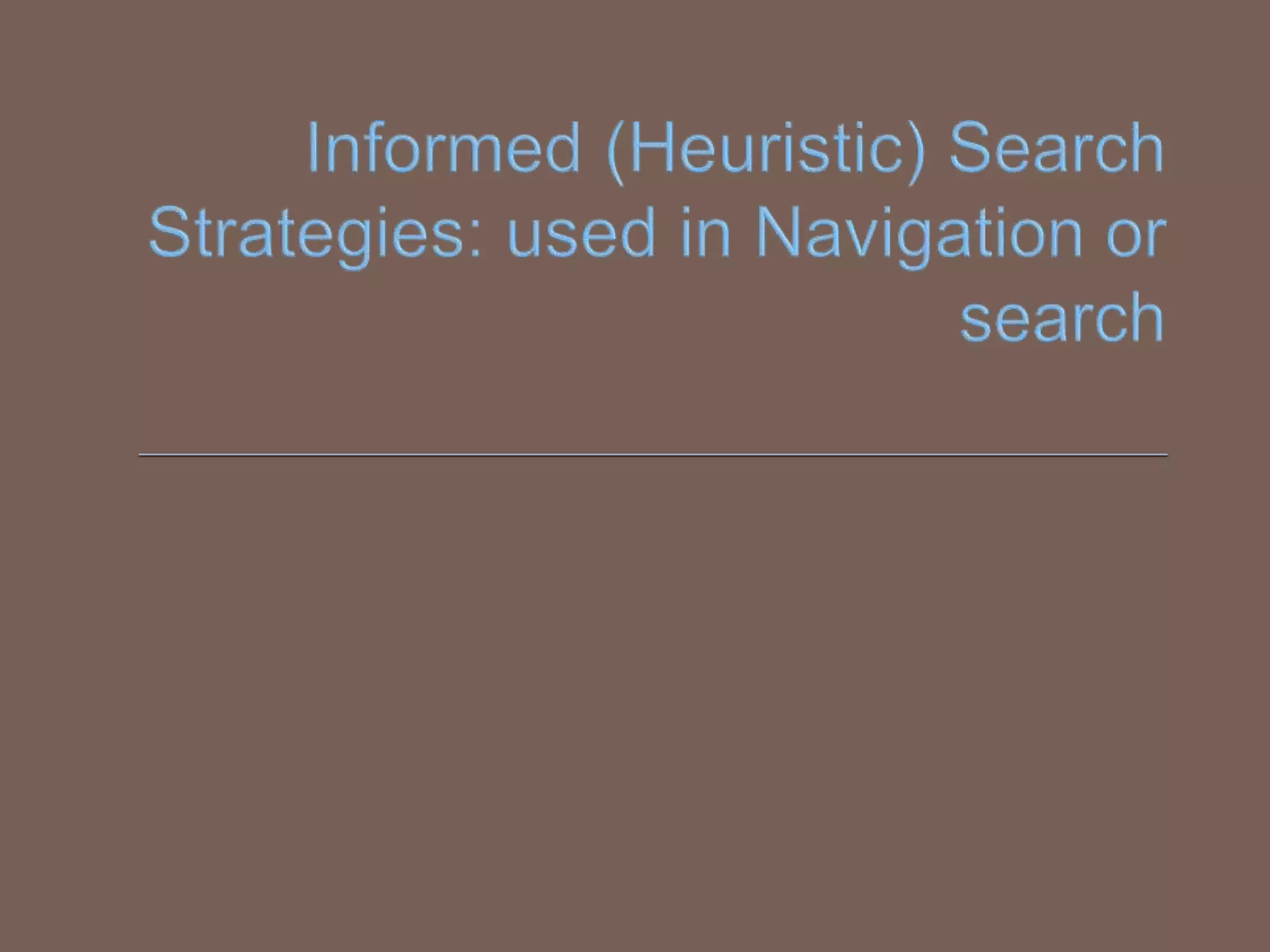 Brute-Force Search Strategies Informed(Heuristic) Search Strategies Local Search Algorithms