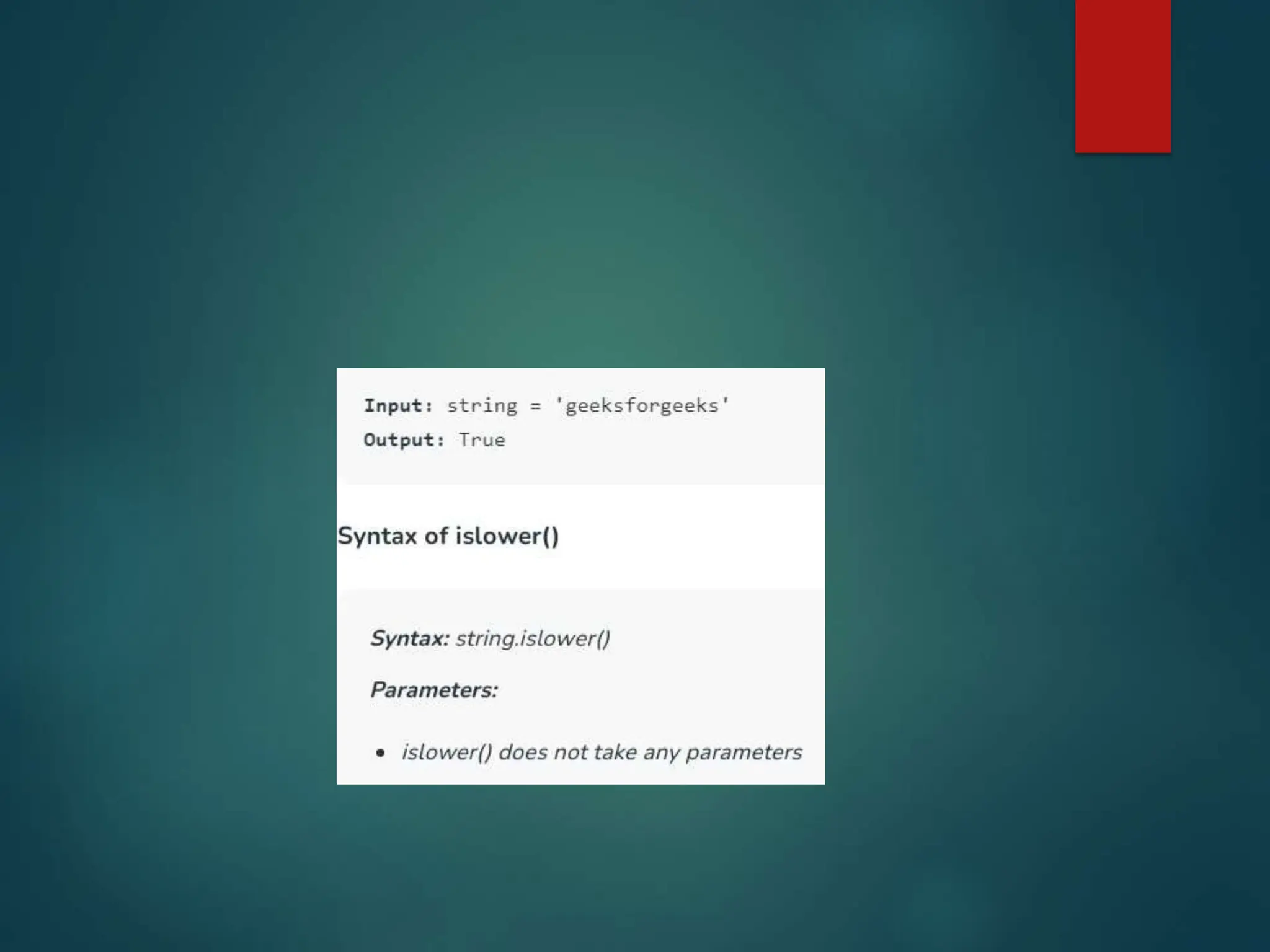 - Common string methods like isupper(), lower(), upper() are used to manipulate string cases.