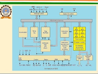 The document serves as an introduction to microprocessors and microcontrollers, detailing their evolution from the first generation (Intel 4004) to the fifth generation (Intel Pentium), along with their specifications and functionalities. It explains the architecture of the 8085 microprocessor, including its buses, operations, and features, such as its ability to communicate with memory and input/output devices. The document also highlights memory types (RAM and ROM), I/O devices handling, and the importance of timing diagrams in instruction execution.